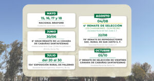 En cuanto a Exposiciones, el 15, 16, 17 y 18 de Mayo vamos a estar participando en la Nacional Braford 2023, en la ciudad de Corrientes. Durante el mes del Julio, del 20 al 30, estaremos en la 134° Exposición Rural de Palermo, en la ciudad de Buenos Aires. Y en el mes de Agosto, los días 19, 20, 21 y 22 estaremos presentes en la 79° Expo Rural San Justo S. F., en todos estos a igual que todos los años presentaremos lo mejor de lo que producimos en nuestros programas genéticos.
